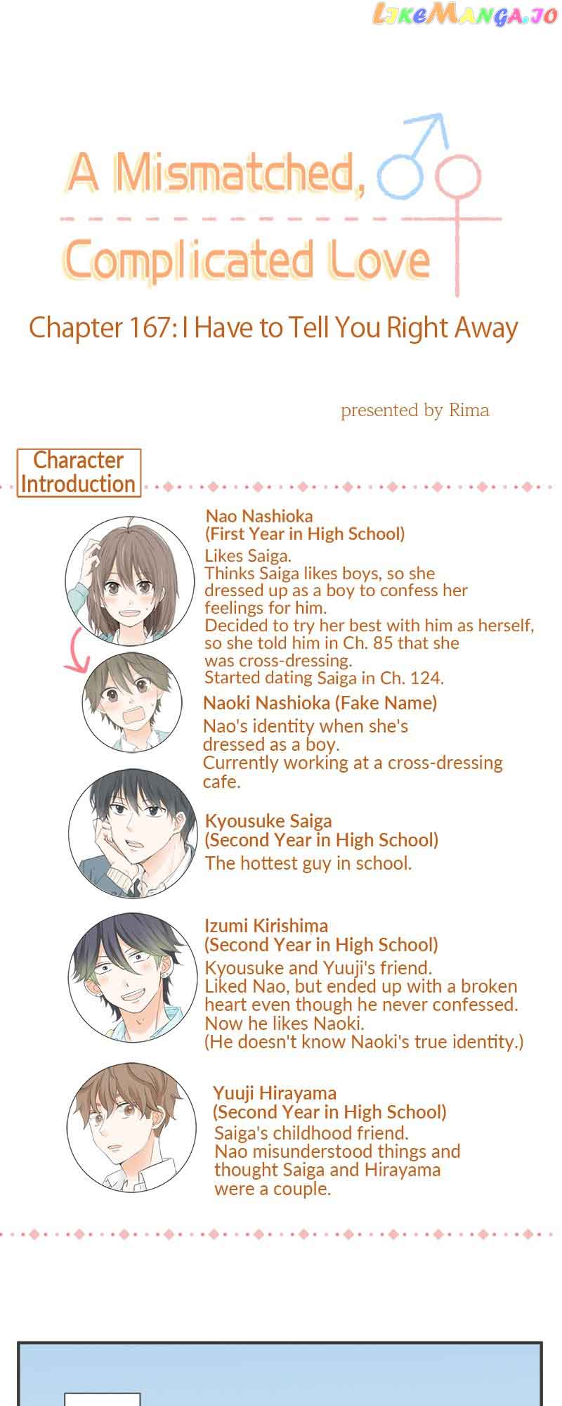 Read the latest manga A Mismatched Complicated Love 167 at Arenascans . Manga A Mismatched Complicated Love is always updated at Arenascans . Dont forget to read the other manga updates. A list of manga collections Arenascans is in the Manga List menu.