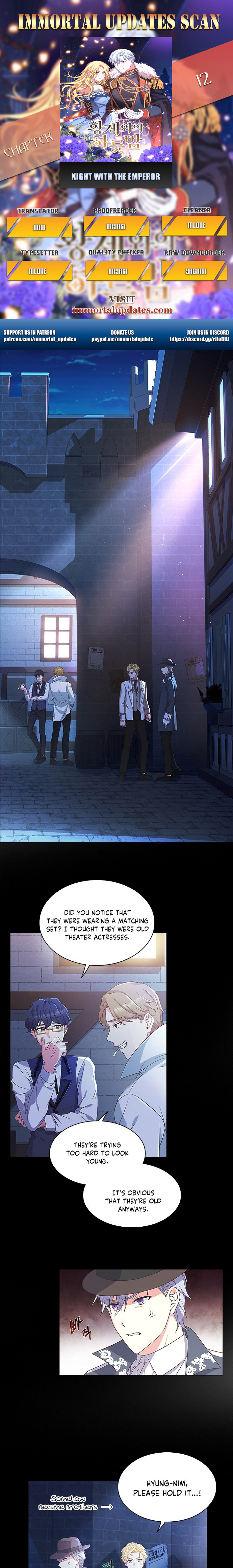 Read the latest manga A Night With The Emperor 12 at Arenascans . Manga A Night With The Emperor is always updated at Arenascans . Dont forget to read the other manga updates. A list of manga collections Arenascans is in the Manga List menu.