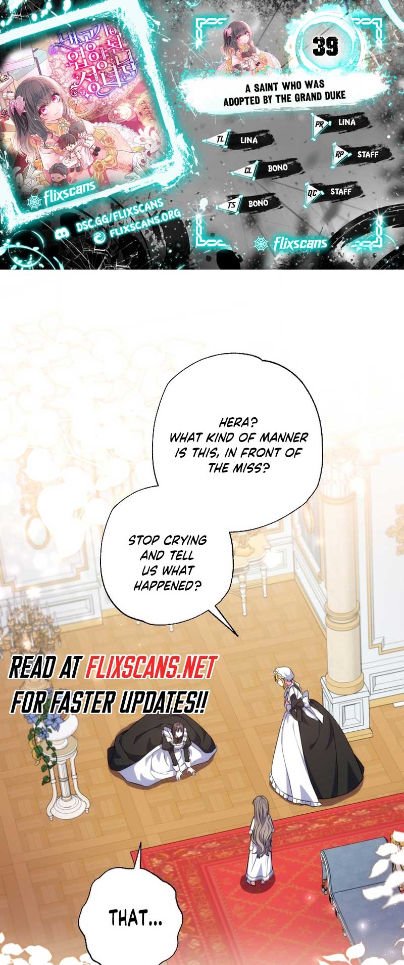 Read the latest manga A Saint Who Was Adopted by the Grand Duke 39 at Arenascans . Manga A Saint Who Was Adopted by the Grand Duke is always updated at Arenascans . Dont forget to read the other manga updates. A list of manga collections Arenascans is in the Manga List menu.
