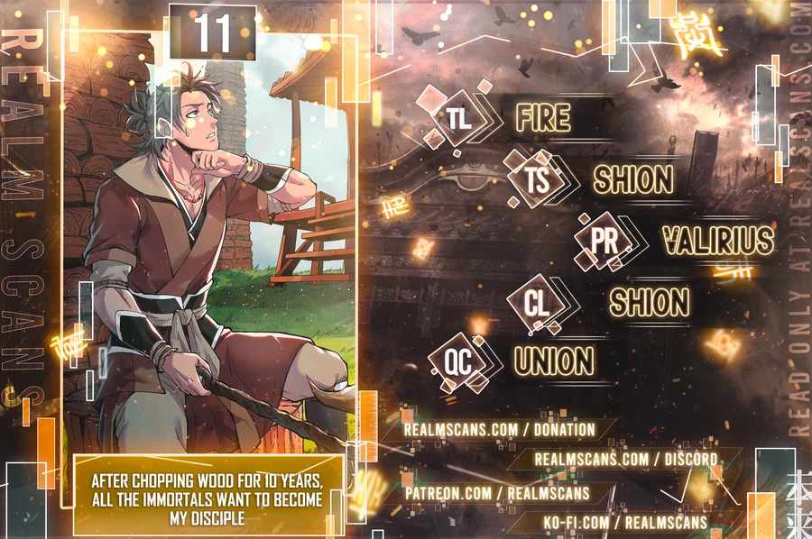 Read the latest manga After Ten Years of Chopping Wood, Immortals Begged To Become My Disciples 11 at Arenascans . Manga After Ten Years of Chopping Wood, Immortals Begged To Become My Disciples is always updated at Arenascans . Dont forget to read the other manga updates. A list of manga collections Arenascans is in the Manga List menu.