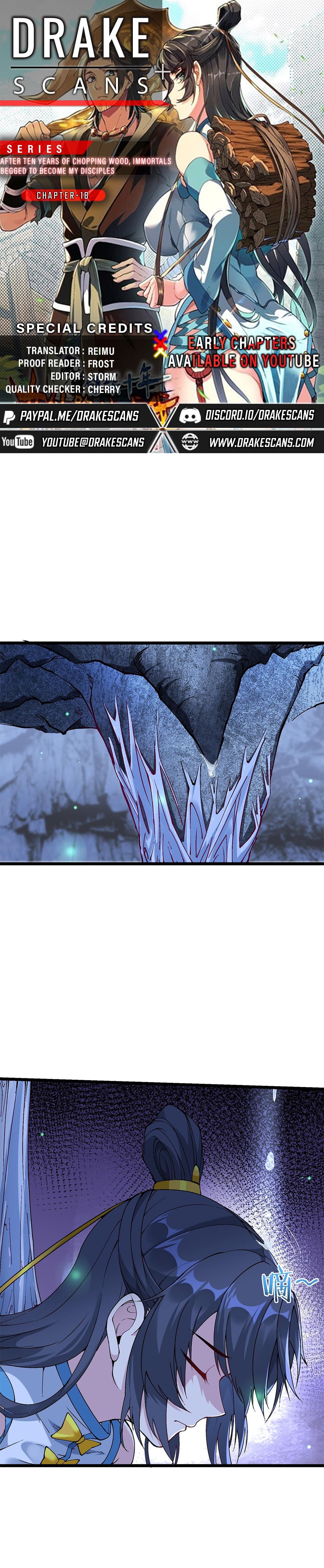 Read the latest manga After Ten Years of Chopping Wood, Immortals Begged To Become My Disciples 18 at Arenascans . Manga After Ten Years of Chopping Wood, Immortals Begged To Become My Disciples is always updated at Arenascans . Dont forget to read the other manga updates. A list of manga collections Arenascans is in the Manga List menu.
