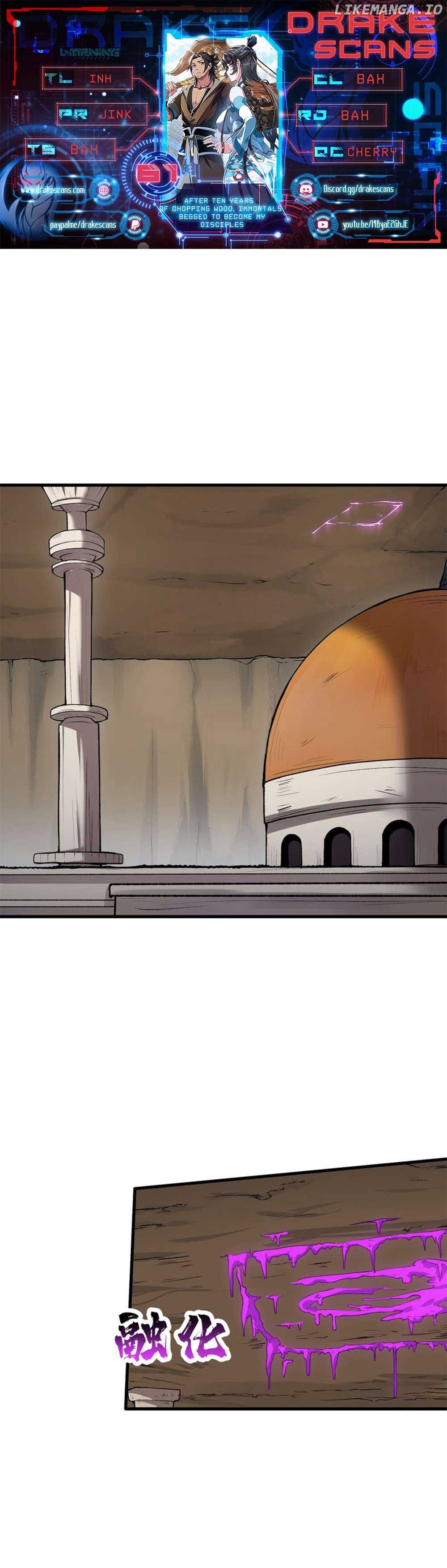 Read the latest manga After Ten Years of Chopping Wood, Immortals Begged To Become My Disciples 62 at Arenascans . Manga After Ten Years of Chopping Wood, Immortals Begged To Become My Disciples is always updated at Arenascans . Dont forget to read the other manga updates. A list of manga collections Arenascans is in the Manga List menu.