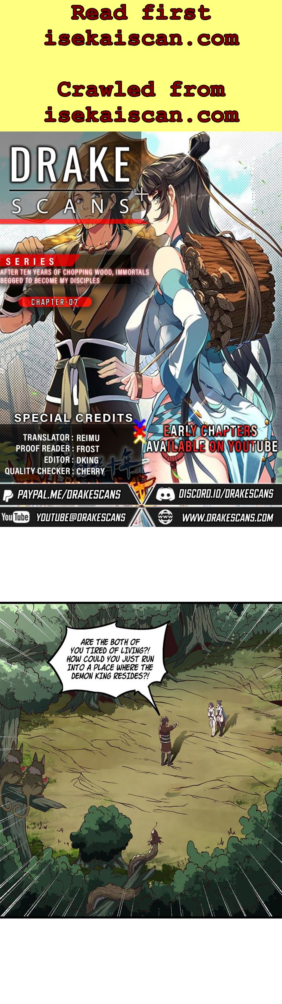 Read the latest manga After Ten Years of Chopping Wood, Immortals Begged To Become My Disciples 7 at Arenascans . Manga After Ten Years of Chopping Wood, Immortals Begged To Become My Disciples is always updated at Arenascans . Dont forget to read the other manga updates. A list of manga collections Arenascans is in the Manga List menu.