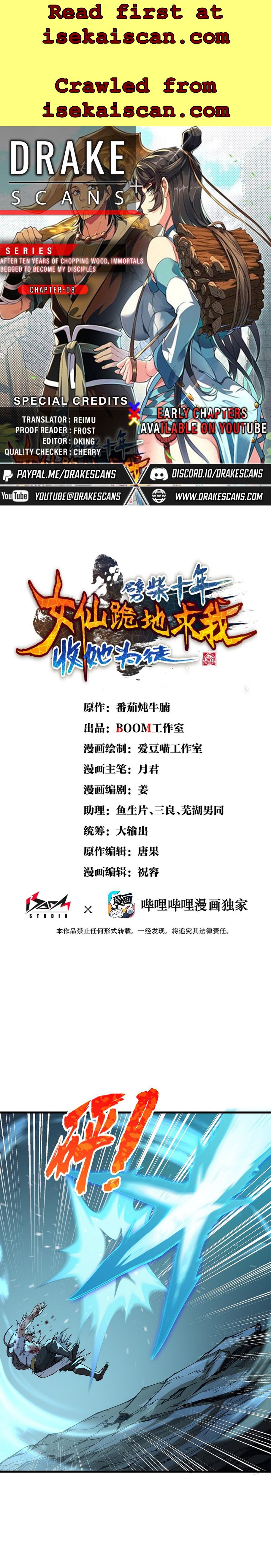 Read the latest manga After Ten Years of Chopping Wood, Immortals Begged To Become My Disciples 8 at Arenascans . Manga After Ten Years of Chopping Wood, Immortals Begged To Become My Disciples is always updated at Arenascans . Dont forget to read the other manga updates. A list of manga collections Arenascans is in the Manga List menu.