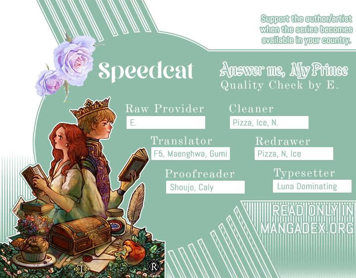 Read the latest manga Answer Me, My Prince 6 at Arenascans . Manga Answer Me, My Prince is always updated at Arenascans . Dont forget to read the other manga updates. A list of manga collections Arenascans is in the Manga List menu.