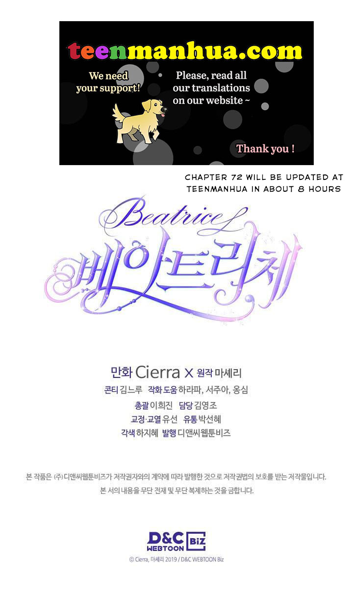 Read the latest manga Beatrice 71 at Arenascans . Manga Beatrice is always updated at Arenascans . Dont forget to read the other manga updates. A list of manga collections Arenascans is in the Manga List menu.