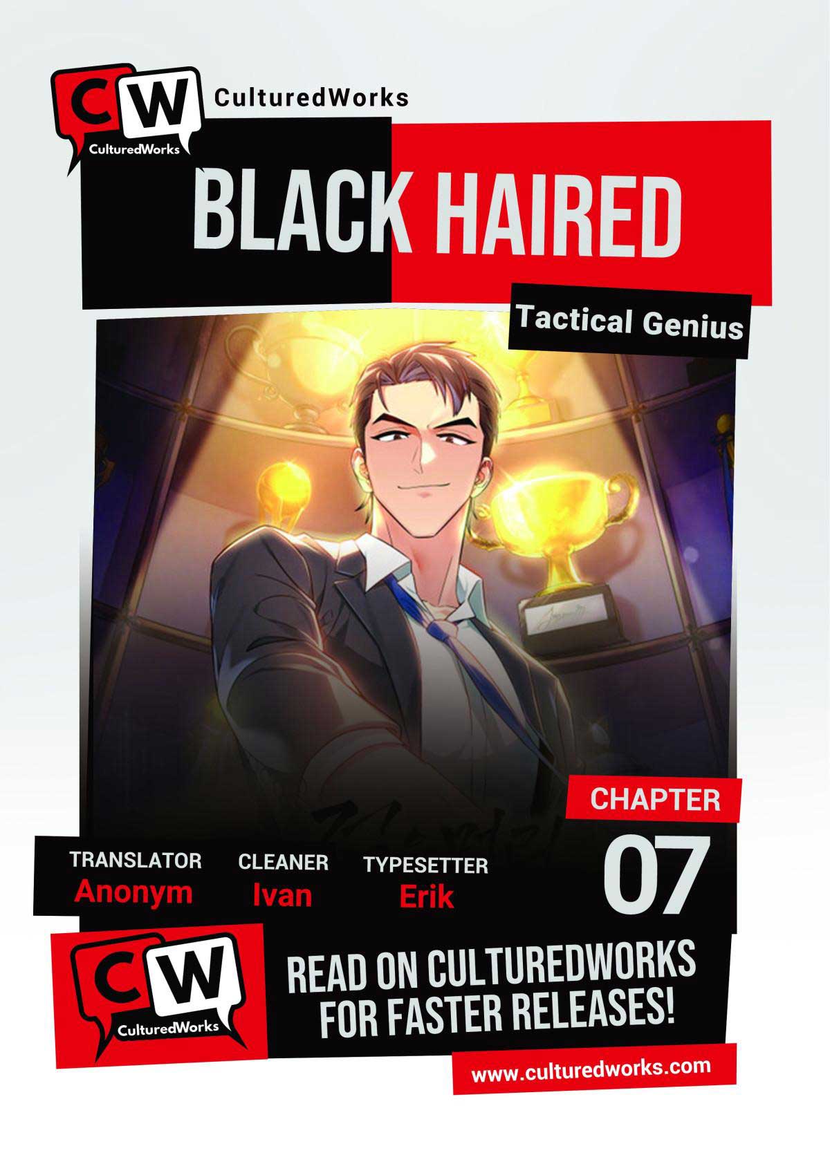 Read the latest manga Black-Haired Tactical Genius 7 at Arenascans . Manga Black-Haired Tactical Genius is always updated at Arenascans . Dont forget to read the other manga updates. A list of manga collections Arenascans is in the Manga List menu.