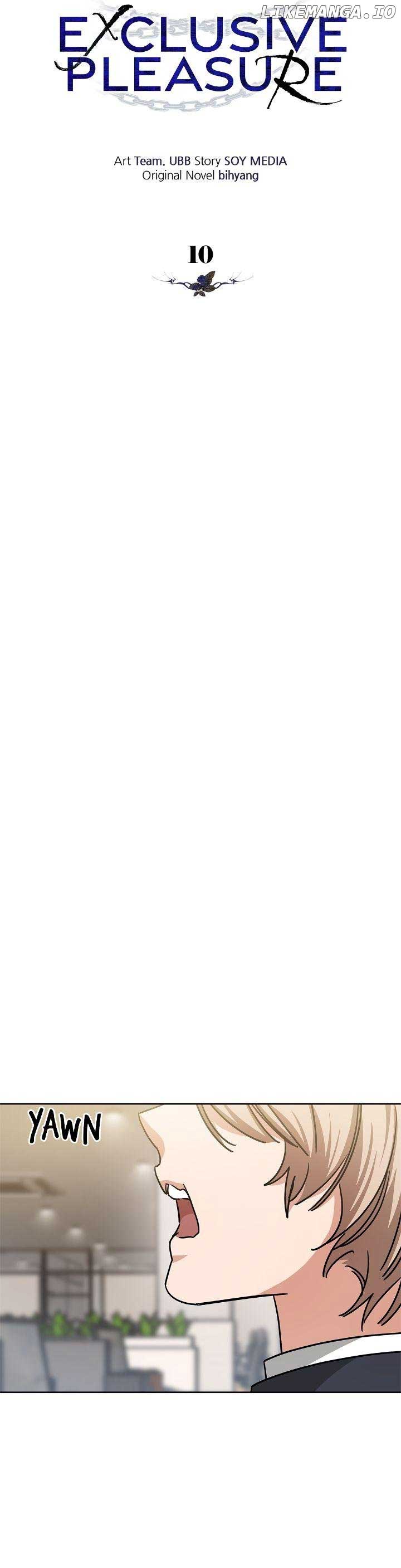 Read the latest manga Exclusive Pleasure 10 at Arenascans . Manga Exclusive Pleasure is always updated at Arenascans . Dont forget to read the other manga updates. A list of manga collections Arenascans is in the Manga List menu.
