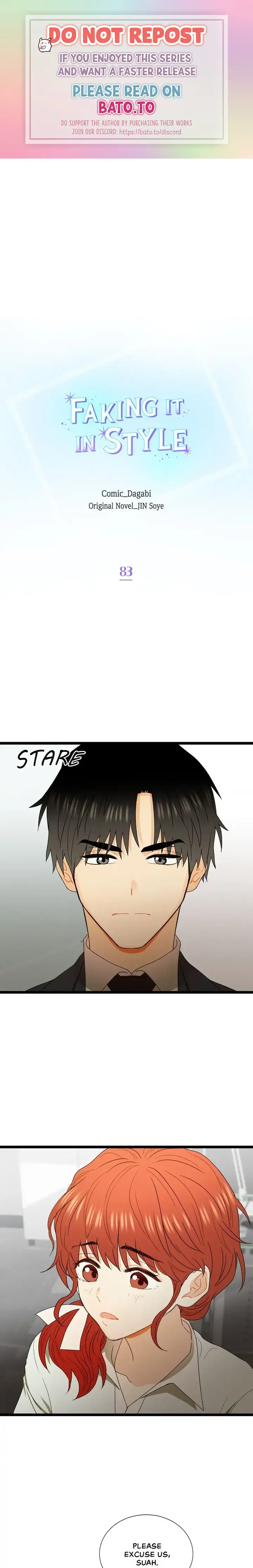 Read the latest manga Faking It In Style 83 at Arenascans . Manga Faking It In Style is always updated at Arenascans . Dont forget to read the other manga updates. A list of manga collections Arenascans is in the Manga List menu.