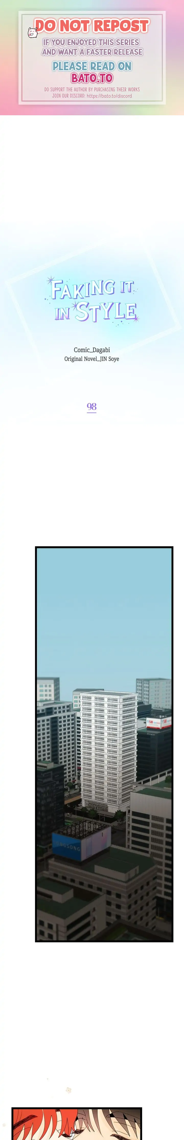 Read the latest manga Faking It In Style 98 at Arenascans . Manga Faking It In Style is always updated at Arenascans . Dont forget to read the other manga updates. A list of manga collections Arenascans is in the Manga List menu.