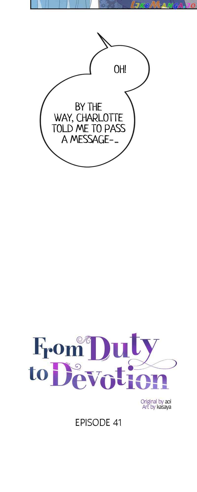 Read the latest manga From Duty to Devotion 41 at Arenascans . Manga From Duty to Devotion is always updated at Arenascans . Dont forget to read the other manga updates. A list of manga collections Arenascans is in the Manga List menu.