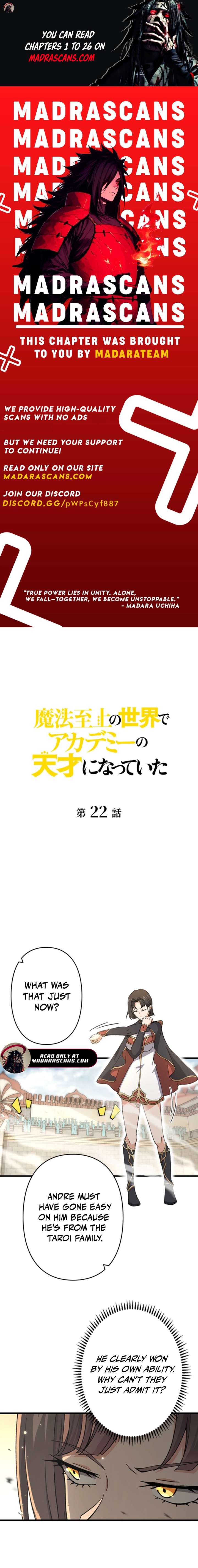 Read the latest manga I Became a Genius at the Academy in a World Where Magic Reigns Supreme 22 at Arenascans . Manga I Became a Genius at the Academy in a World Where Magic Reigns Supreme is always updated at Arenascans . Dont forget to read the other manga updates. A list of manga collections Arenascans is in the Manga List menu.
