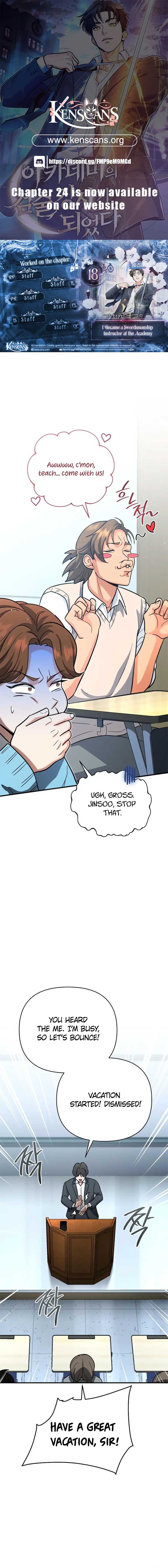 Read the latest manga I Became a Swordsmanship Instructor at the Academy 18 at Arenascans . Manga I Became a Swordsmanship Instructor at the Academy is always updated at Arenascans . Dont forget to read the other manga updates. A list of manga collections Arenascans is in the Manga List menu.