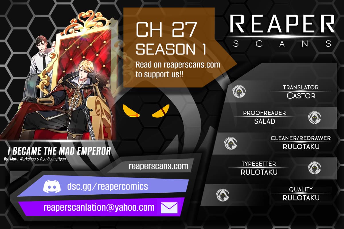 Read the latest manga I Became the Mad Emperor 27 at Arenascans . Manga I Became the Mad Emperor is always updated at Arenascans . Dont forget to read the other manga updates. A list of manga collections Arenascans is in the Manga List menu.