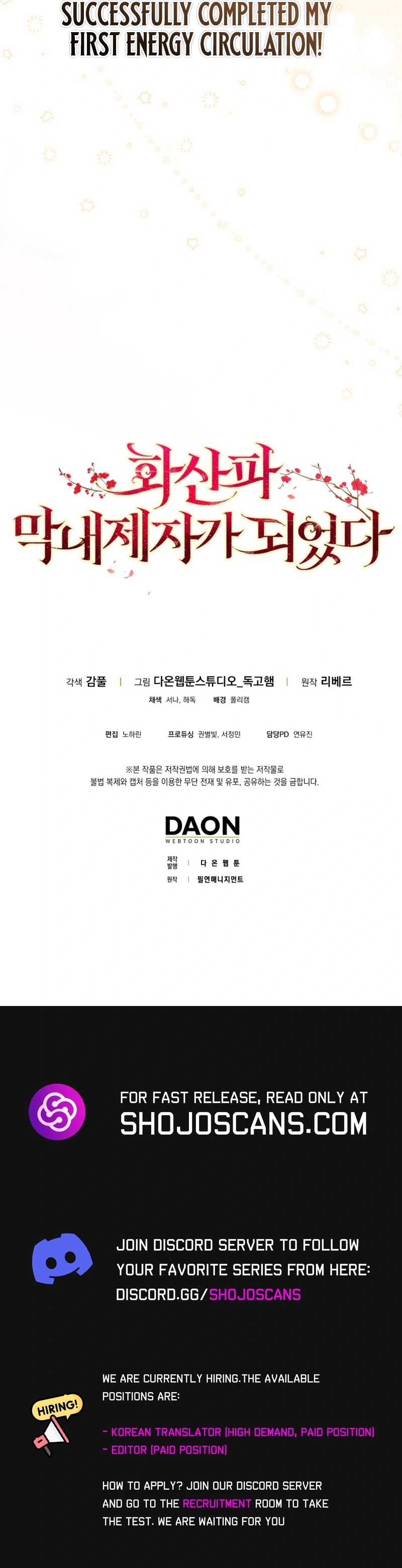 Read the latest manga I Became The Youngest Disciple of The Mount Hua Sect 8 at Arenascans . Manga I Became The Youngest Disciple of The Mount Hua Sect is always updated at Arenascans . Dont forget to read the other manga updates. A list of manga collections Arenascans is in the Manga List menu.