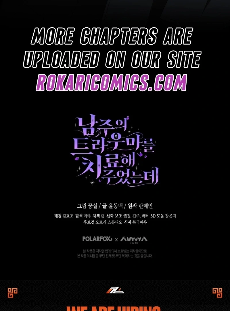 Read the latest manga I Healed The Male Lead’s Trauma 27 at Arenascans . Manga I Healed The Male Lead’s Trauma is always updated at Arenascans . Dont forget to read the other manga updates. A list of manga collections Arenascans is in the Manga List menu.