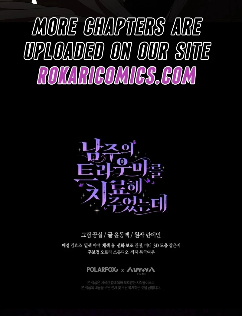 Read the latest manga I Healed The Male Lead’s Trauma 31 at Arenascans . Manga I Healed The Male Lead’s Trauma is always updated at Arenascans . Dont forget to read the other manga updates. A list of manga collections Arenascans is in the Manga List menu.