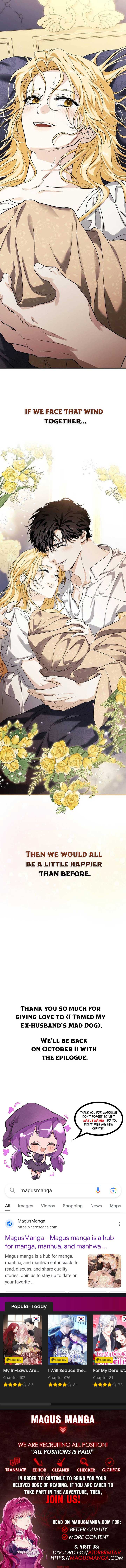 Read the latest manga I Tamed My Ex-Husband’s Mad Dog 92 at Arenascans . Manga I Tamed My Ex-Husband’s Mad Dog is always updated at Arenascans . Dont forget to read the other manga updates. A list of manga collections Arenascans is in the Manga List menu.