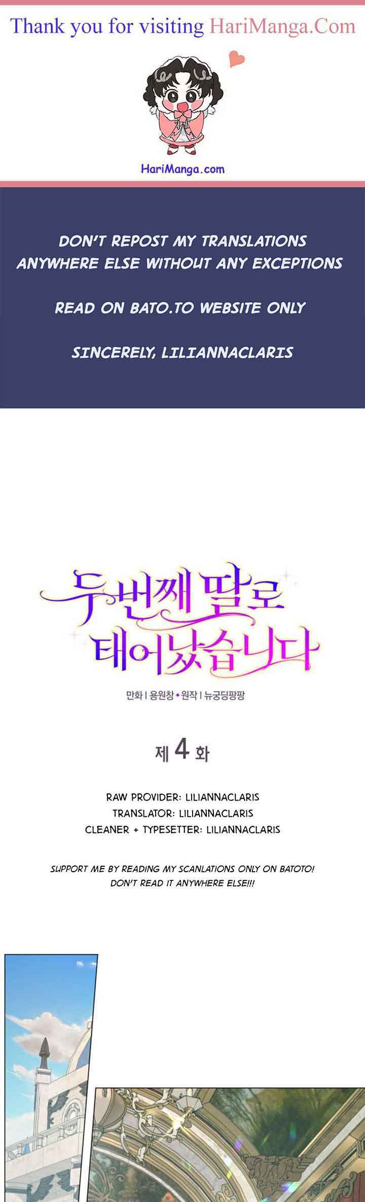 Read the latest manga I Was Born As The Second Daughter 4 at Arenascans . Manga I Was Born As The Second Daughter is always updated at Arenascans . Dont forget to read the other manga updates. A list of manga collections Arenascans is in the Manga List menu.
