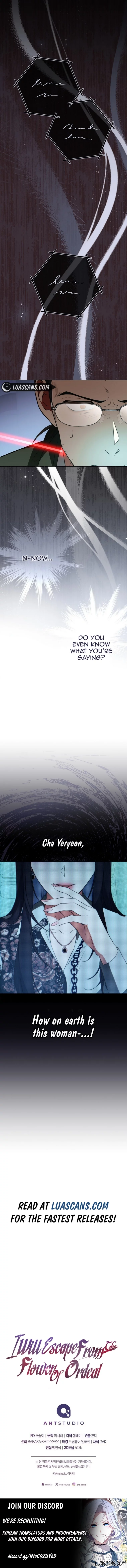 Read the latest manga I will escape from the flower of ordeal 35 at Arenascans . Manga I will escape from the flower of ordeal is always updated at Arenascans . Dont forget to read the other manga updates. A list of manga collections Arenascans is in the Manga List menu.