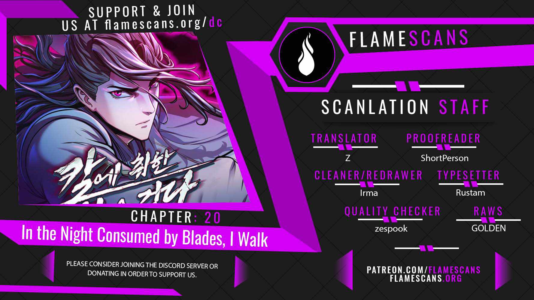 Read the latest manga In the Night Consumed by Blades, I Walk (Sword Fanatic Wanders Through The Night) 20 at Arenascans . Manga In the Night Consumed by Blades, I Walk (Sword Fanatic Wanders Through The Night) is always updated at Arenascans . Dont forget to read the other manga updates. A list of manga collections Arenascans is in the Manga List menu.