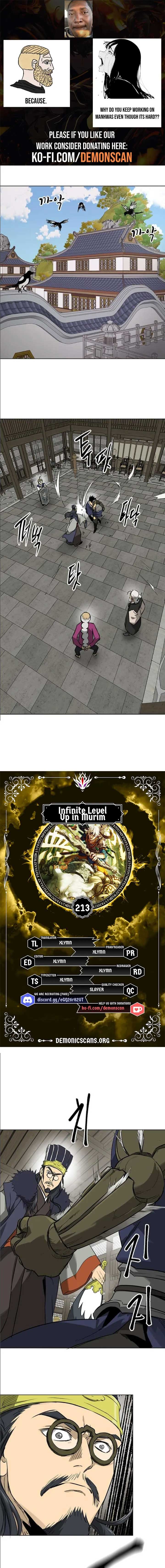 Read the latest manga Infinite Level Up in Murim 213 at Arenascans . Manga Infinite Level Up in Murim is always updated at Arenascans . Dont forget to read the other manga updates. A list of manga collections Arenascans is in the Manga List menu.