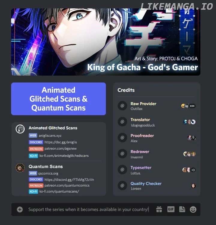 All chapters are in King of Gacha ~God’s Gamer~