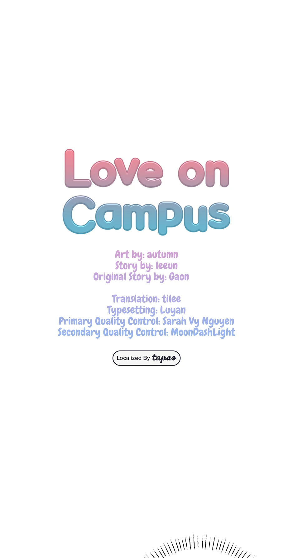 Read the latest manga Love on Campus 62 at Arenascans . Manga Love on Campus is always updated at Arenascans . Dont forget to read the other manga updates. A list of manga collections Arenascans is in the Manga List menu.