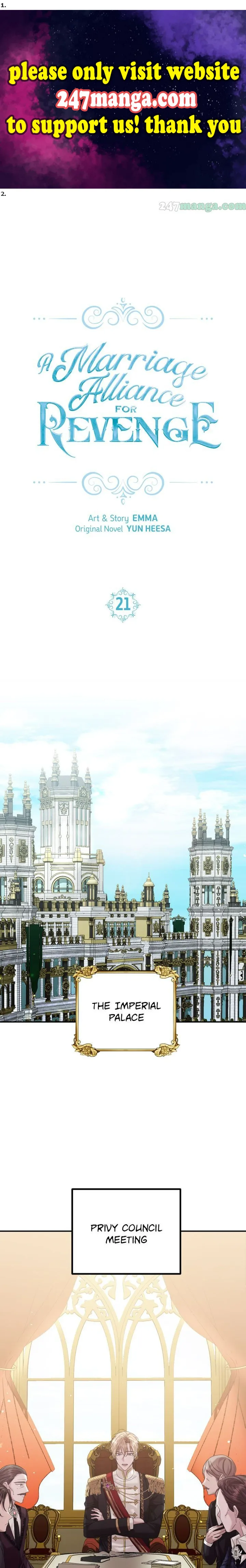 Read the latest manga Marriage Alliance for Revenge 21 at Arenascans . Manga Marriage Alliance for Revenge is always updated at Arenascans . Dont forget to read the other manga updates. A list of manga collections Arenascans is in the Manga List menu.