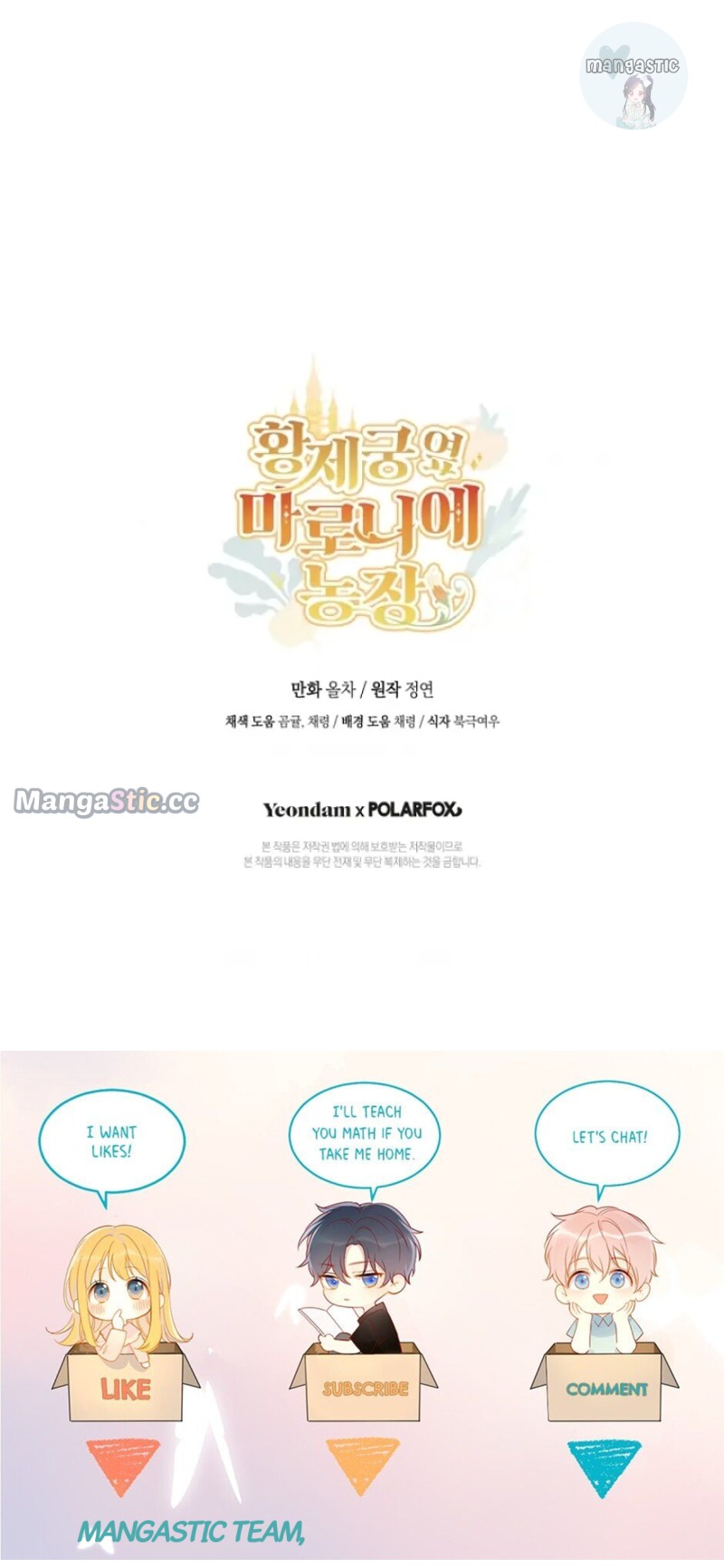 Read the latest manga Marronnier Farm Near By The Imperial Palace 48 at Arenascans . Manga Marronnier Farm Near By The Imperial Palace is always updated at Arenascans . Dont forget to read the other manga updates. A list of manga collections Arenascans is in the Manga List menu.