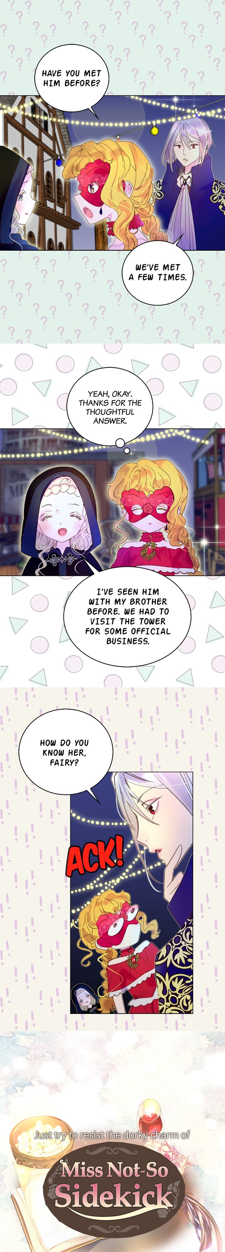 Read the latest manga Miss Not-So Sidekick 59 at Arenascans . Manga Miss Not-So Sidekick is always updated at Arenascans . Dont forget to read the other manga updates. A list of manga collections Arenascans is in the Manga List menu.