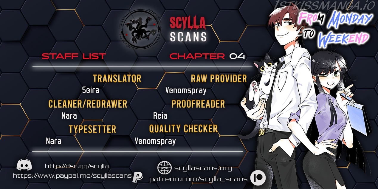 Read the latest manga Monday to Weekend 4 at Arenascans . Manga Monday to Weekend is always updated at Arenascans . Dont forget to read the other manga updates. A list of manga collections Arenascans is in the Manga List menu.