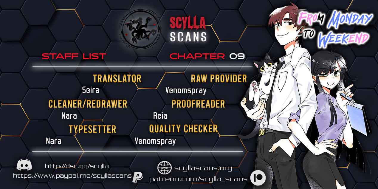Read the latest manga Monday to Weekend 9 at Arenascans . Manga Monday to Weekend is always updated at Arenascans . Dont forget to read the other manga updates. A list of manga collections Arenascans is in the Manga List menu.
