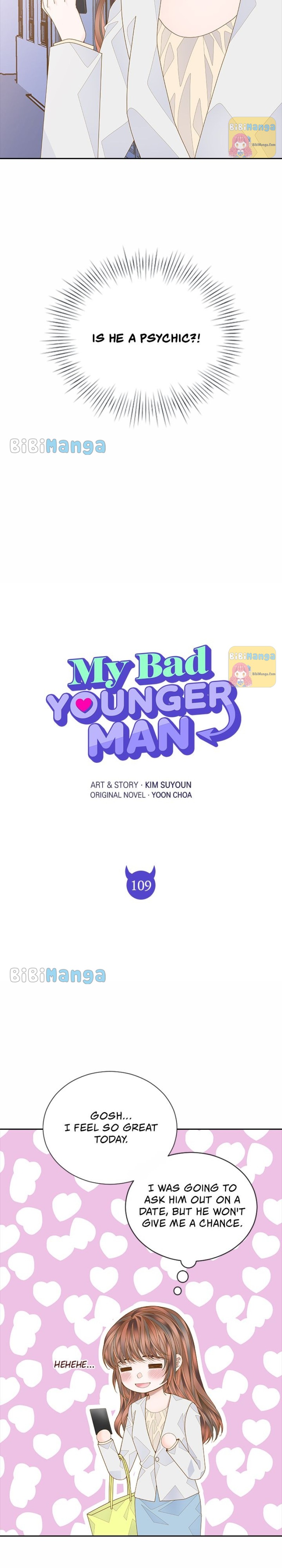 Read the latest manga My Bad Younger Man 109 at Arenascans . Manga My Bad Younger Man is always updated at Arenascans . Dont forget to read the other manga updates. A list of manga collections Arenascans is in the Manga List menu.