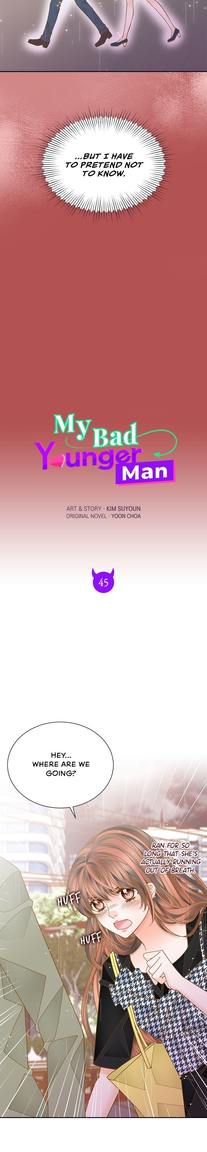 Read the latest manga My Bad Younger Man 45 at Arenascans . Manga My Bad Younger Man is always updated at Arenascans . Dont forget to read the other manga updates. A list of manga collections Arenascans is in the Manga List menu.