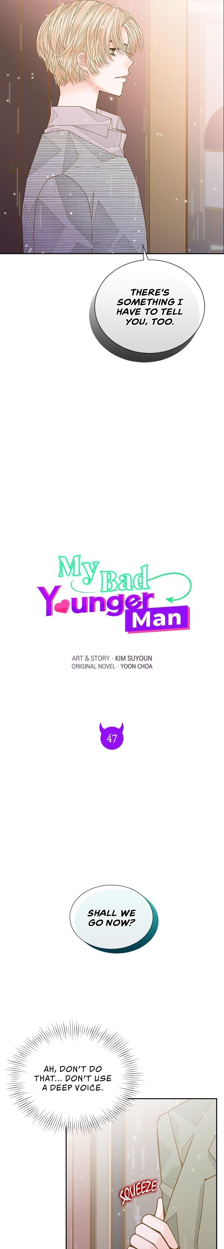 Read the latest manga My Bad Younger Man 47 at Arenascans . Manga My Bad Younger Man is always updated at Arenascans . Dont forget to read the other manga updates. A list of manga collections Arenascans is in the Manga List menu.