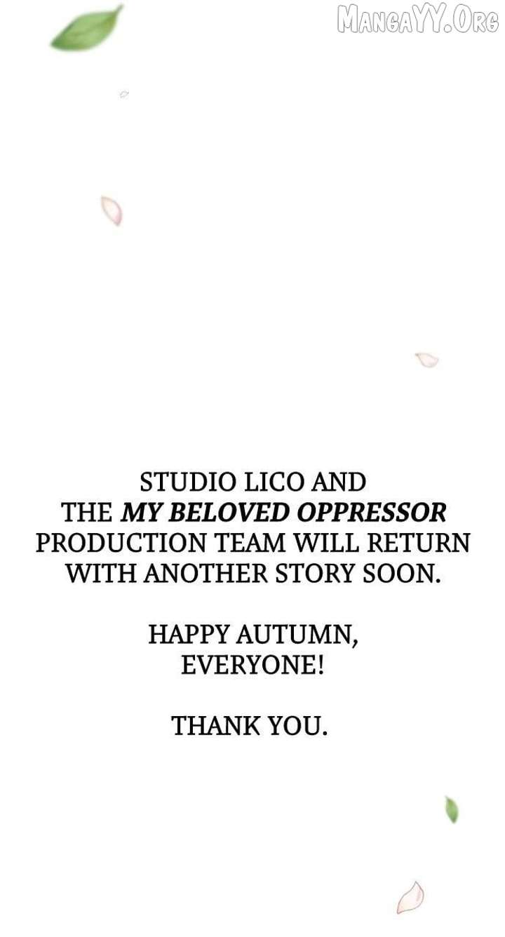 Read the latest manga My Beloved Oppressor 84.5 at Arenascans . Manga My Beloved Oppressor is always updated at Arenascans . Dont forget to read the other manga updates. A list of manga collections Arenascans is in the Manga List menu.