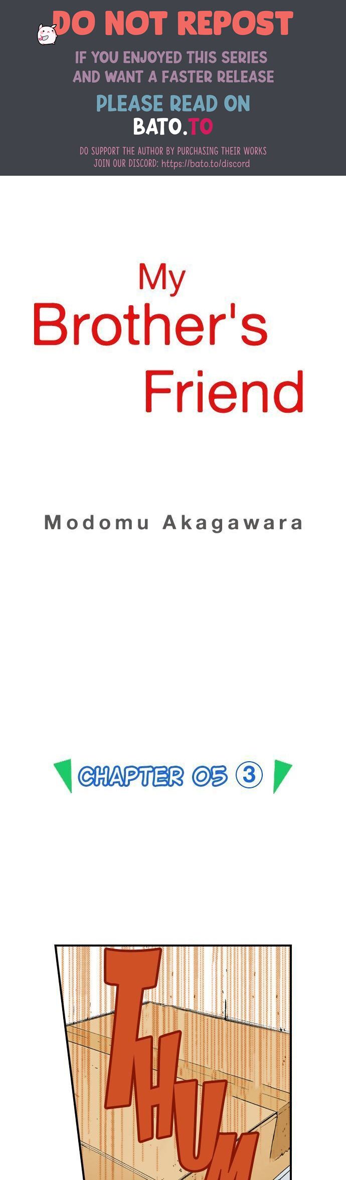 Read the latest manga My Brother’s Friend 19 at Arenascans . Manga My Brother’s Friend is always updated at Arenascans . Dont forget to read the other manga updates. A list of manga collections Arenascans is in the Manga List menu.