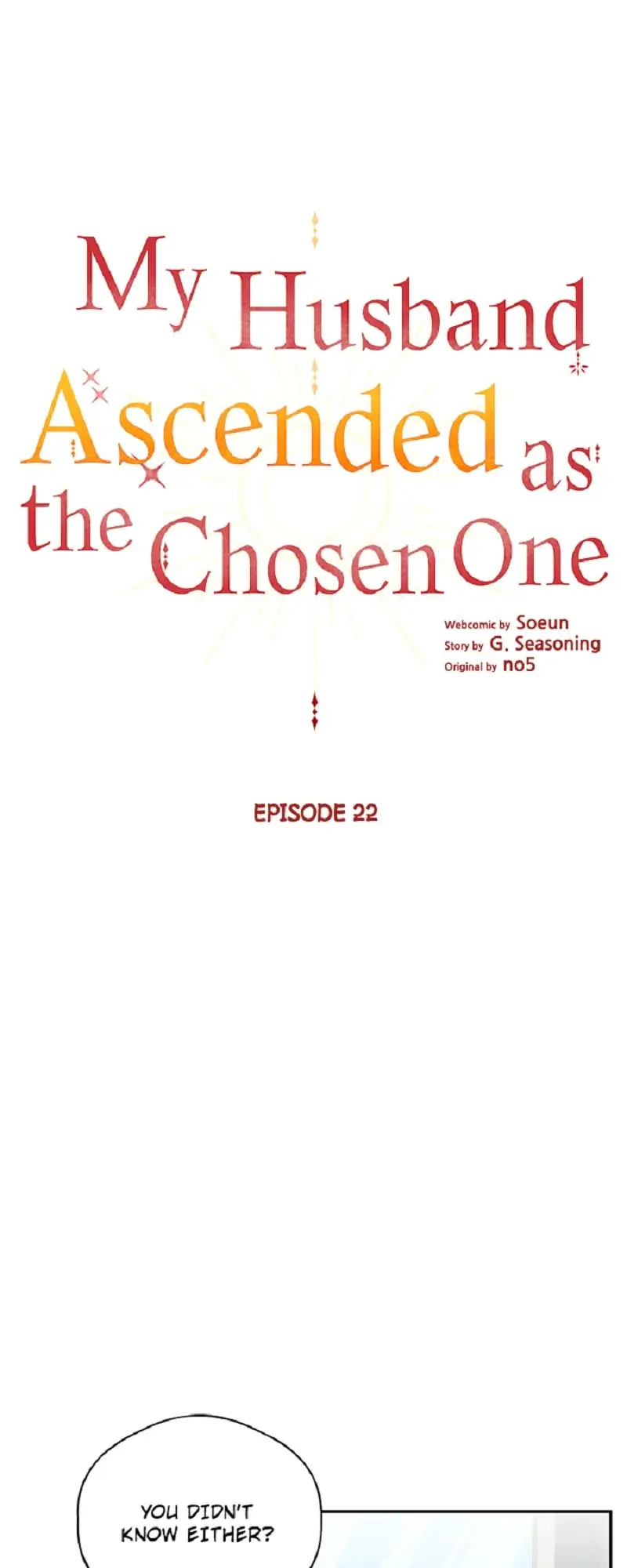 Read the latest manga My Husband Ascended as the Chosen One 22 at Arenascans . Manga My Husband Ascended as the Chosen One is always updated at Arenascans . Dont forget to read the other manga updates. A list of manga collections Arenascans is in the Manga List menu.
