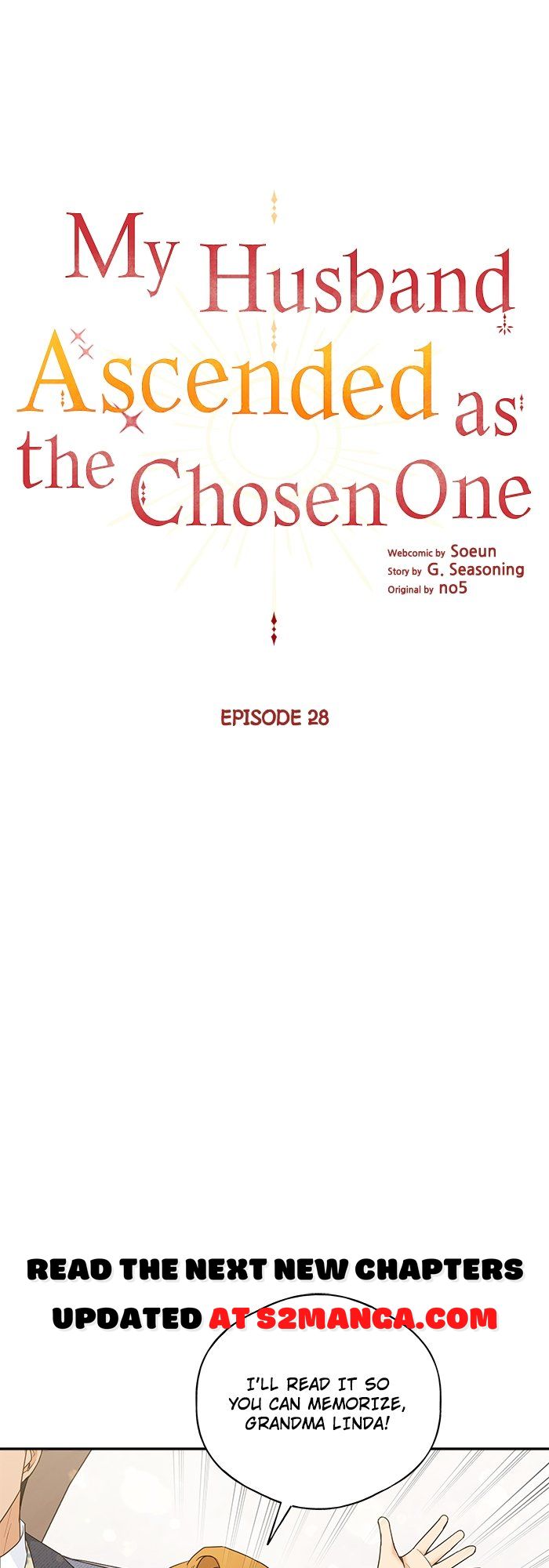 Read the latest manga My Husband Ascended as the Chosen One 28 at Arenascans . Manga My Husband Ascended as the Chosen One is always updated at Arenascans . Dont forget to read the other manga updates. A list of manga collections Arenascans is in the Manga List menu.