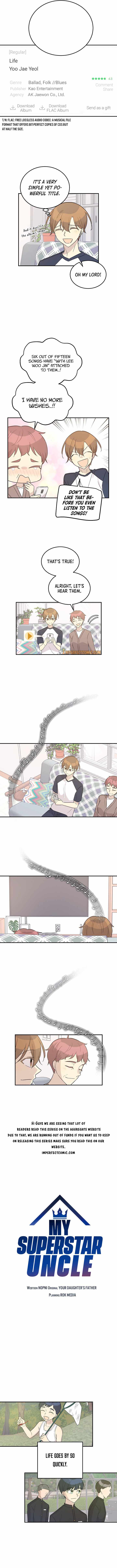 Read the latest manga My Superstar Uncle 109 at Arenascans . Manga My Superstar Uncle is always updated at Arenascans . Dont forget to read the other manga updates. A list of manga collections Arenascans is in the Manga List menu.
