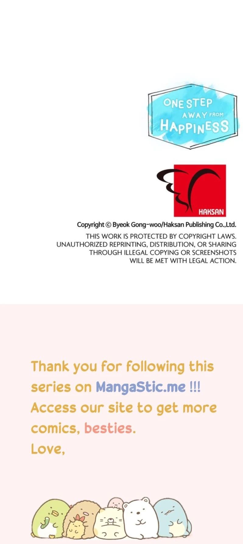 Read the latest manga One Step Away From Happiness 67 at Arenascans . Manga One Step Away From Happiness is always updated at Arenascans . Dont forget to read the other manga updates. A list of manga collections Arenascans is in the Manga List menu.