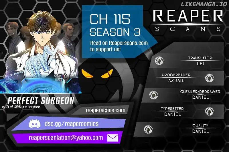 Read the latest manga Perfect Surgeon 115 at Arenascans . Manga Perfect Surgeon is always updated at Arenascans . Dont forget to read the other manga updates. A list of manga collections Arenascans is in the Manga List menu.