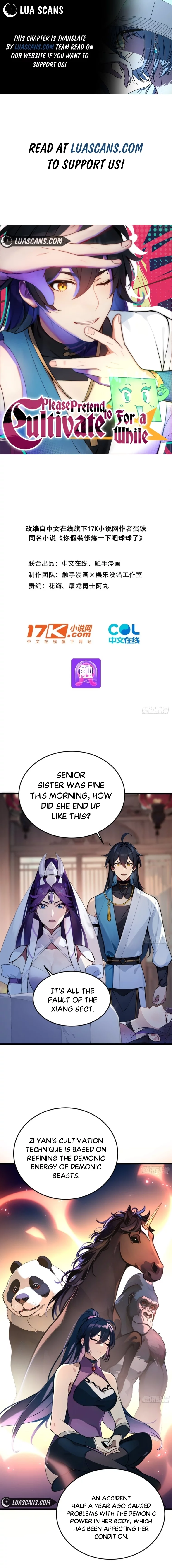 Read the latest manga Please Pretend to Cultivate For a While 3 at Arenascans . Manga Please Pretend to Cultivate For a While is always updated at Arenascans . Dont forget to read the other manga updates. A list of manga collections Arenascans is in the Manga List menu.