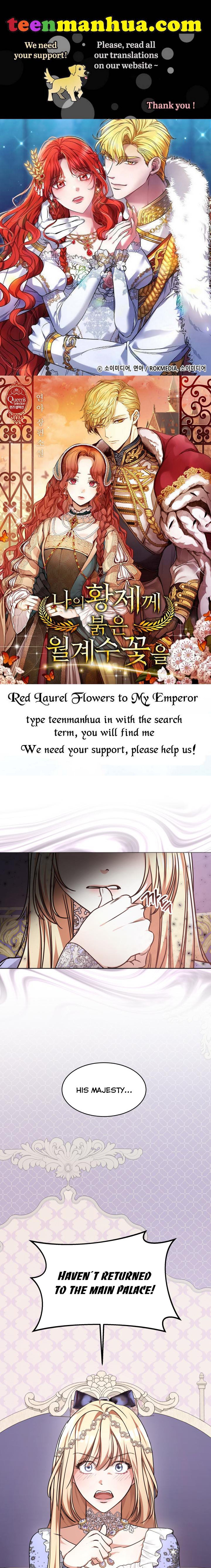 Read the latest manga Red Laurel Flowers to My Emperor 4 at Arenascans . Manga Red Laurel Flowers to My Emperor is always updated at Arenascans . Dont forget to read the other manga updates. A list of manga collections Arenascans is in the Manga List menu.