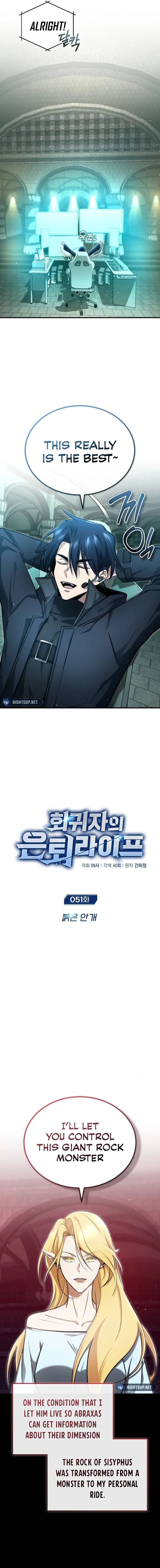 Read the latest manga Regressor’s Life After Retirement 51 at Arenascans . Manga Regressor’s Life After Retirement is always updated at Arenascans . Dont forget to read the other manga updates. A list of manga collections Arenascans is in the Manga List menu.