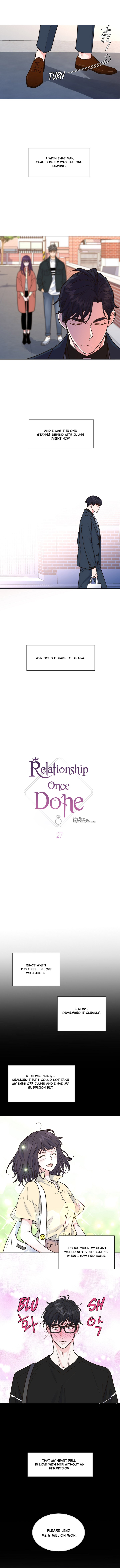 Read the latest manga Relationship Once Done 27 at Arenascans . Manga Relationship Once Done is always updated at Arenascans . Dont forget to read the other manga updates. A list of manga collections Arenascans is in the Manga List menu.