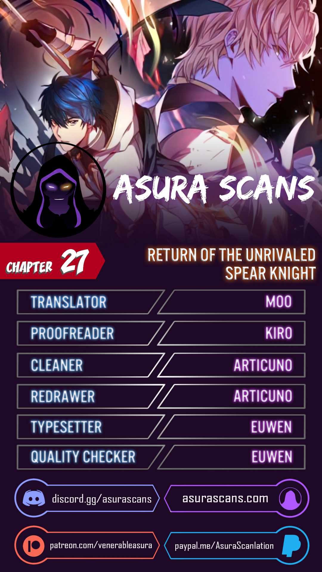 Read the latest manga Return of the Legendary Spear Knight 27 at Arenascans . Manga Return of the Legendary Spear Knight is always updated at Arenascans . Dont forget to read the other manga updates. A list of manga collections Arenascans is in the Manga List menu.
