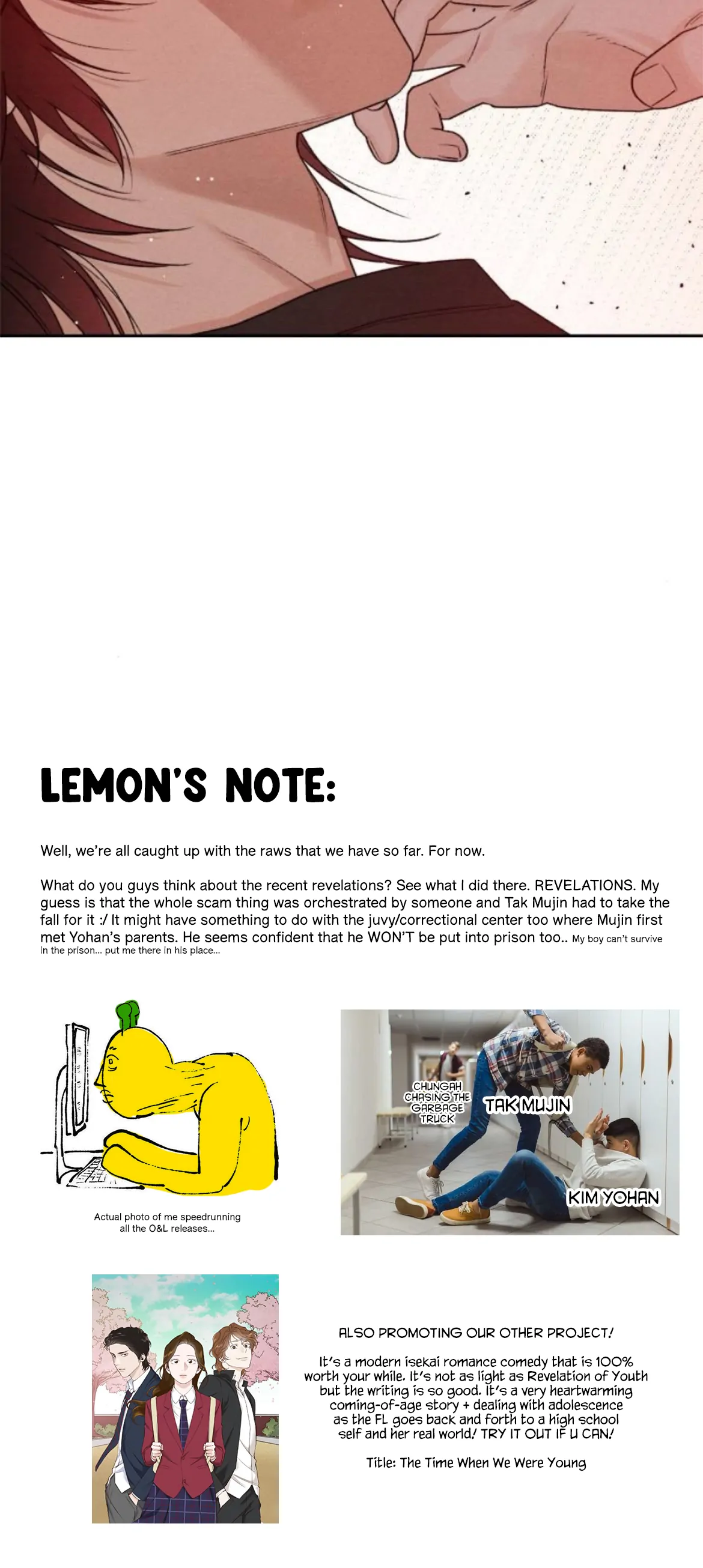 Read the latest manga Revelation Of Youth 81 at Arenascans . Manga Revelation Of Youth is always updated at Arenascans . Dont forget to read the other manga updates. A list of manga collections Arenascans is in the Manga List menu.