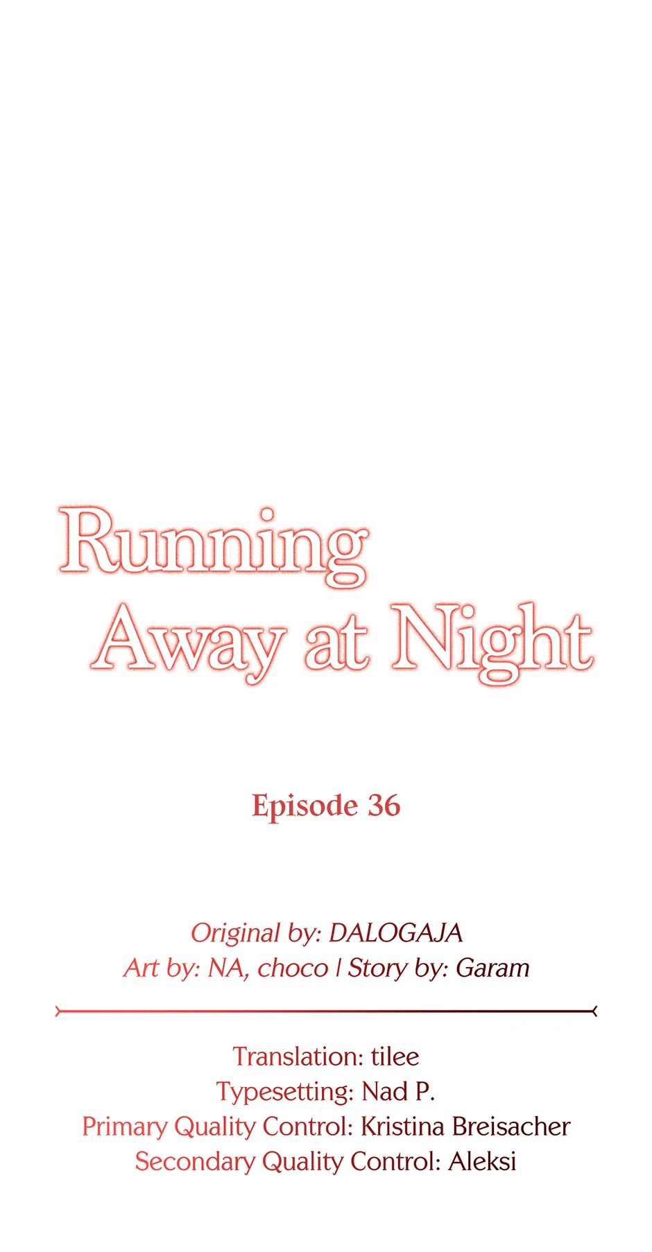 Read the latest manga Running Away at Night 36 at Arenascans . Manga Running Away at Night is always updated at Arenascans . Dont forget to read the other manga updates. A list of manga collections Arenascans is in the Manga List menu.